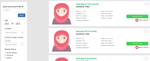 இந்த Advance Search தேடல் விருப்பத்தில், நீங்கள் பொருத்தமான வாழ்க்கைத் துணை ஒன்றைக் கண்டறிய உங்கள் விருப்பங்களைத் தெரிவுசெய்ய பட்டியலிடப்பட்டு காண்பிக்கப்பட்ட சுயவிபரங்ககள் உடனடியாக உங்கள் தெரிவு அடிப்படையில் மாறும்.