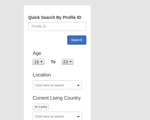 "ஒரு வாழ்க்கைத்துணை கண்டுபிடி ( Find a life partner) " இல், நீங்கள் சமர்ப்பித்த சுயவிபரங்கள் ஒன்றில் இருந்து ஒன்றை தெரிவு செய்து Search கிளிக் செய்யவும்.