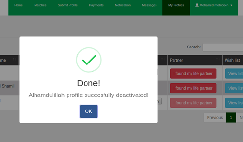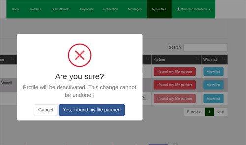 Once you have found your life partner, you can stop further inquiries coming to your profiles by clicking “I found my life partner” button and following the Instructions.