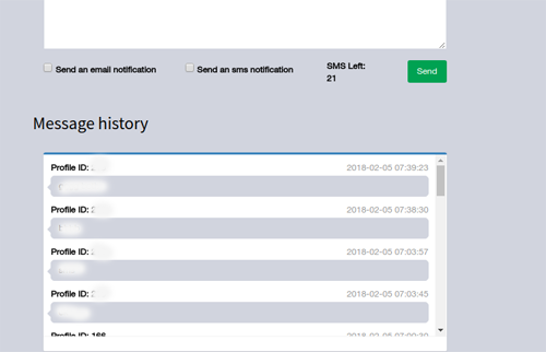 நீங்கள் சுயவிபர பயனருக்கு (user ) ஒரு செய்தியை அனுப்பலாம். ஒரு செய்தியை அனுப்பும்போது, நீங்கள் சுயவிபர பயனருக்கு (user ) மின்னஞ்சல் மற்றும் SMS மூலம் அறிவுறுத்தலாம். மின்னஞ்சல் அறிவிப்பு அல்லது SMS அறிவிப்புக்கான Check boxஐ tick செய்ய மறக்க வேண்டாம்.