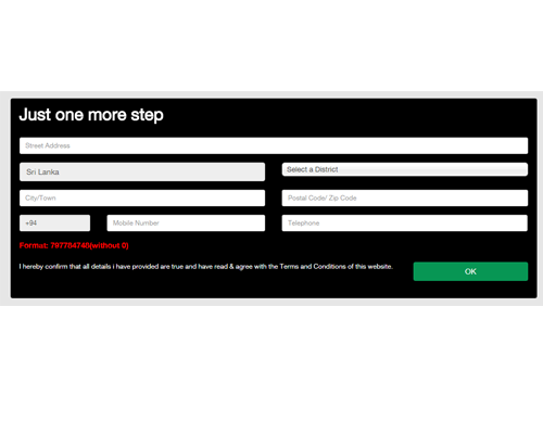 உங்களது கையடக்க தொலைபேசி எண்ணை உறுதி படுத்த Nikah.lk SMS மூலமாக அனுப்பப்பட்ட எண்களை Enter பண்ணவும் அல்லது பிறகு Enter பண்ண "My Account" Menu வில் கீழ் Enter பண்ண முடியும். இதன்பின் நீங்கள் Nikah .lk சேவையை பயன் படுத்த உள் நுழைய முடியும். முக்கிய குறிப்பு, மொபைல் எண்ணை சரிபார்க்கும் வரையில், பிற பயனர்களிடமிருந்து ( from other user ) எந்த SMS அறிவிப்புகளையும் நீங்கள் பெறமாட்டீர்கள்.