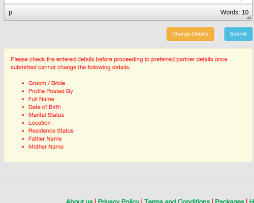 You can edit/update your profile details and preferred partner details. While making changes to the details make sure you click the update button. Your details and the preferred partner details have separate update buttons. Click the update button on the respective details section.