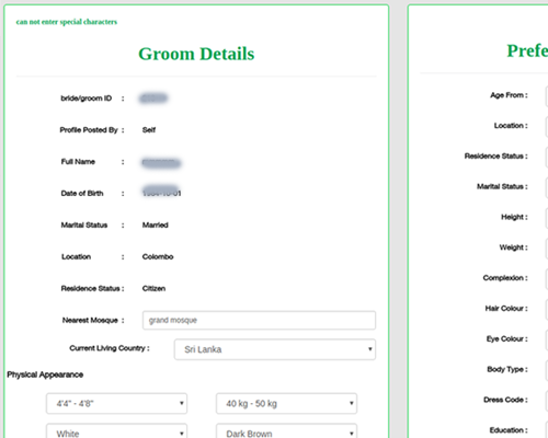 Submit complete details of a Groom / Bride. Date of Birth and the Name will not be visible to others. Name is for your reference and Date of birth will be used to calculate the age of the groom/bride . Therefore providing these info accurately will help you to find a right life partner.